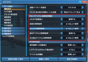 3.「ドロップアイテム自動取得機能」の項目があるので設定する